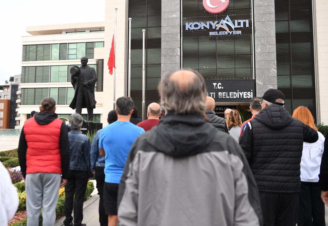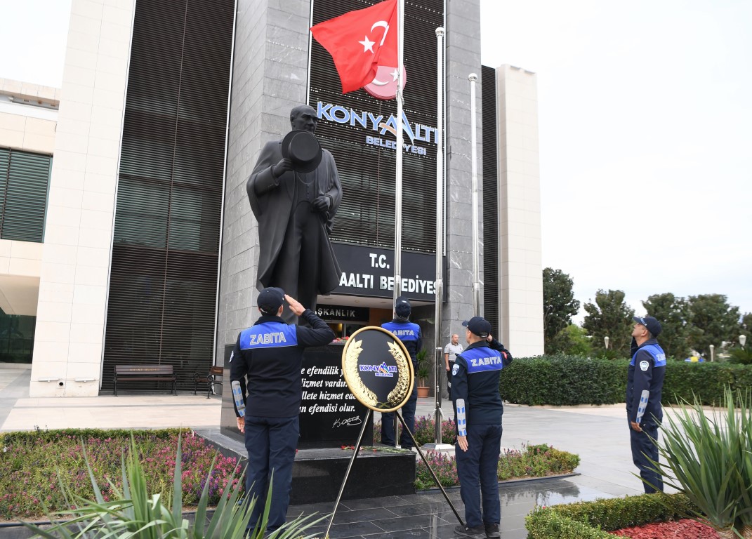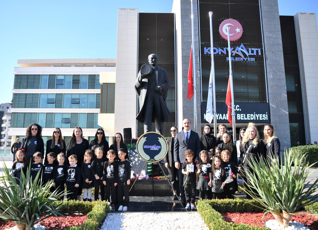 Konyaaltı Belediyesi, 10 Kasım’da Türkiye’nin kurucusu Mustafa Kemal Atatürk’ü andı. Belediye ana hizmet binası önünde düzenlenen törene personel ve birim müdürleri katılırken, Konyaaltı Belediyesi kreş öğrencileri ve Zabıta Müdürlüğü ekipleri, Atatürk’e olan saygılarını çelenk ve kırmızı karanfille sundu. Tören saygı duruşu sonrası, İstiklal Marşı’nın okunması ile son buldu. Başkan Kotan çelenk sunumundan sonra minik öğrencileri makamında ağırladı. Öğrenciler Atatürk’e ithafen şiir okudu. Minik öğrencilerle sohbet eden Başkan Kotan, Atatürk’ü çocuklarla birlikte anmaktan onur duyduğunu kaydetti.