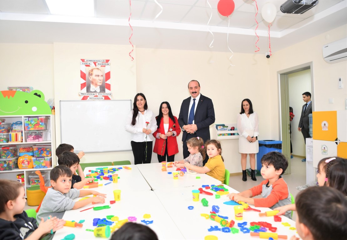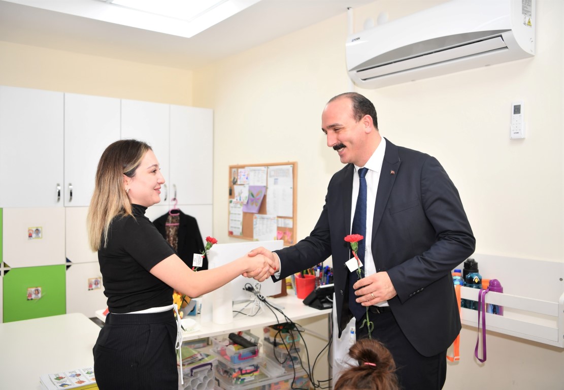 Öğretmenlerin geleceğin mimarları olduğunu kaydeden Başkan Kotan, “Başta Başöğretmeniz Mustafa Kemal Atatürk olmak üzere tüm öğretmenlerimizin gününü kutluyorum. Öğretmenlerimiz, çocuklarımızın hayatına dokunarak aslında bizlerin de geleceğine katkıda bulunurlar. Özellikle kreş öğretmenlerimiz, çocuklarımızın ilk eğitim basamağında onlara sevgiyle rehberlik ediyor. Emekleriyle, sabırlarıyla ve özverileriyle geleceğe umutla bakan bireyler yetiştiriyorlar. Bugün onların bu kutsal görevini bir kez daha takdir etmek ve yanlarında olduğumuzu hissettirmek istedik” şeklinde konuştu.