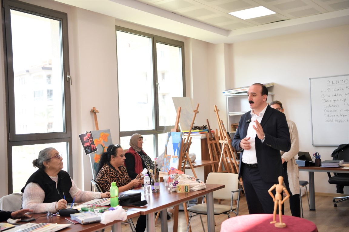 Kursiyerlerin çalışmalarını yerinde inceleyen Başkan Kotan, sanatsal üretimin desteklenmesi ve kültürel faaliyetlerin daha geniş kitlelere ulaşması için Konyaaltı Belediyesi’nin yürüttüğü çalışmalara dikkat çekti. Kotan, eğitmenlerle yaptığı görüşmelerde ise, her iki merkezde de verilen eğitimlerin kalitesini artırmak ve kursiyerlerin ihtiyaçlarını karşılamak adına yapılabilecek projelerle ilgili bilgi aldı. Müzik Akademisi envanterinde yer alan enstrümanları da tek tek kontrol eden Başkan Kotan kursiyerlere, sanata olan ilgilerinden dolayı teşekkür etti.