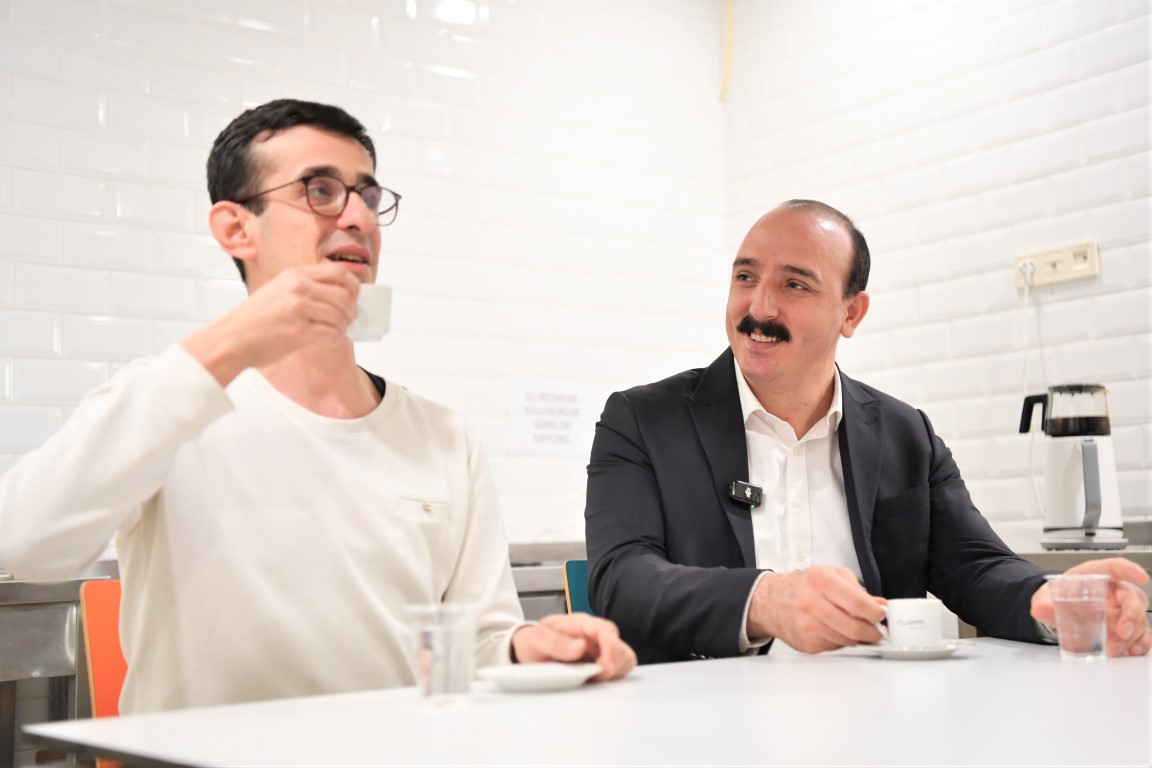 Yaşam Boyu Sanat ve Destek Merkezi’ni ziyareti sırasında özel gereksinimli personel Mert Yaraşır ile de bir süre sohbet eden Başkan Kotan, Mert’in kahve teklifini de geri çevirmedi. Mert’in yaptığı kahveyi içerken bir yandan da Mert ile sohbet eden Kotan, Konyaaltı Belediyesi olarak ilerleyen günlerde engelli bireyler için de farklı projeler hayata geçireceklerini aktardı.
