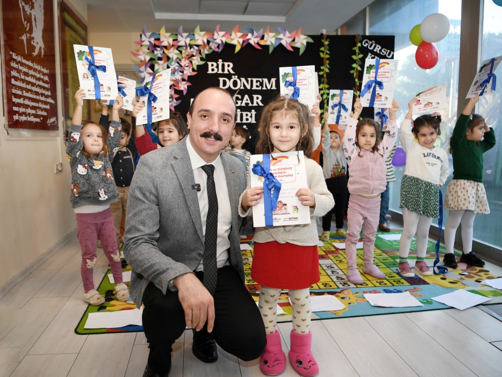 Karne sevinci yaşayan öğrencileri tebrik eden Başkan Kotan, “Bugün, kreşlerimizde eğitim gören öğrencilerimizin karne heyecanına tanıklık ettik. Miniklerimizin gözlerindeki heyecanı gördüğümde bir kez daha umut doldum. Her birini kendi çocuğumuz gibi gördüğümüz miniklerimizin güvenli bir ortamda eğitim görmeleri bizler için çok önemli. Eğitim hayatlarının ilk adımı olan okul öncesi eğitimlerinde çocuklarımıza en iyi imkanı sunmak için var gücümüzle çalışıyoruz’’ dedi. Çocukların ve ailelerinin heyecanına ortak olmaktan duyduğu memnuniyeti ifade eden Başkan Kotan, ‘‘Çocuklarımızın her birini ayrı ayrı tebrik ediyor, eğitim hayatlarına yaptıkları katkı için ise öğretmenlerimize çok teşekkür ediyorum’’ dedi.