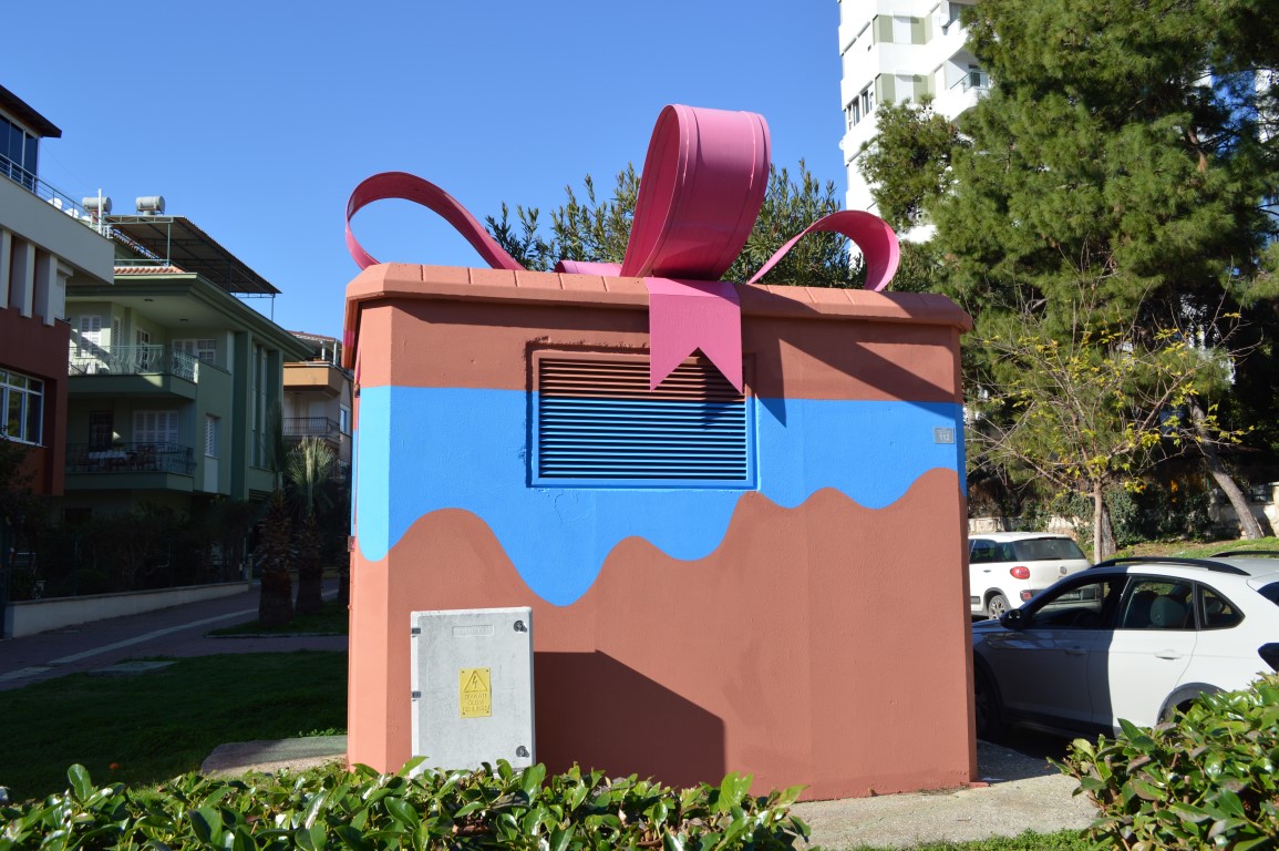 Konyaaltı Belediyesi, ilçe genelindeki elektrik trafolarını birer sanat eserine dönüştürerek kent yaşamına dahil ediyor. İlçenin farklı yerlerinde yer alan ve bir çoğunun üzerinde görüntü kirliliği yaratacak yazı ve şekiller bulunan elektrik trafo binalarını tespit eden Konyaaltı Belediyesi Park ve Bahçeler Müdürlüğü ekipleri, bu binaları proje kapsamına dahil ediyor. Görüntü kirliliğine yol açan yazı ve şekillerin olduğu binaları proje kapsamında öncelikle uygun renklere boyayarak görüntü kirliliğini ortadan kaldıran ekipler, sonrasında ise binaları canlı renk ve dikkat çeken desenlerle süslüyor.