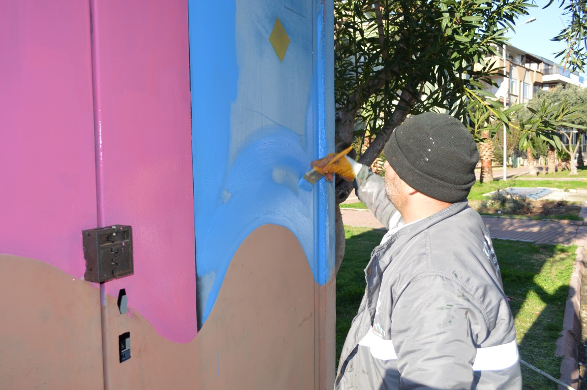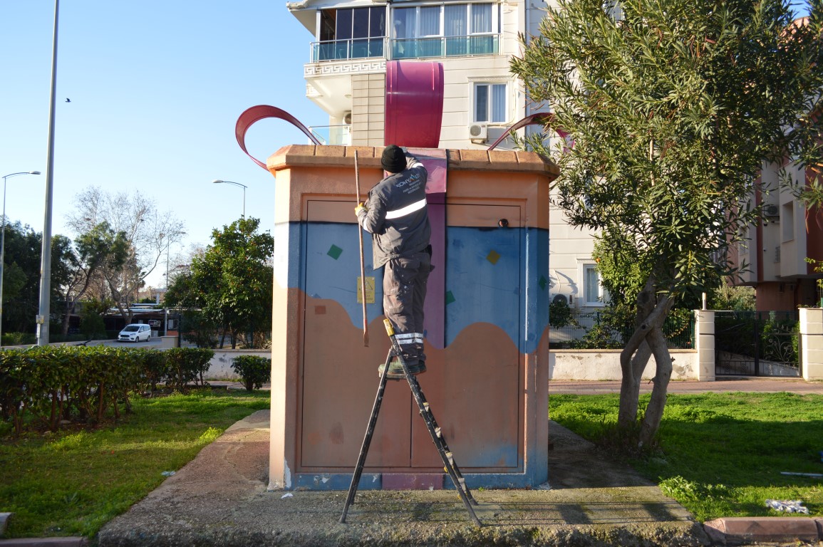 Konyaaltı Belediye Başkanı Cem Kotan’ın çevre düzenlemeleri kapsamında verdiği talimatla harekete geçen Park ve Bahçeler Müdürlüğü ekipleri, proje kapsamında ilk olarak Belediye Caddesi üzerinde yer alan bir trafo binasında boyama çalışması gerçekleştirdi. Yıllar içinde dış cephesi tamamen yıpranmış, üzerine sprey boyayla yazılan yazılarla son derece kötü bir görünüme sahip olan trafo binası, Konyaaltı Belediyesi ekiplerinin yaptığı çalışmayla inanılmaz bir değişim yaşadı. İlçe genelinde kötü görünüme sahip olduğu tespit edilen trafo binaları için çalışmaların devam edeceği bildirildi.
