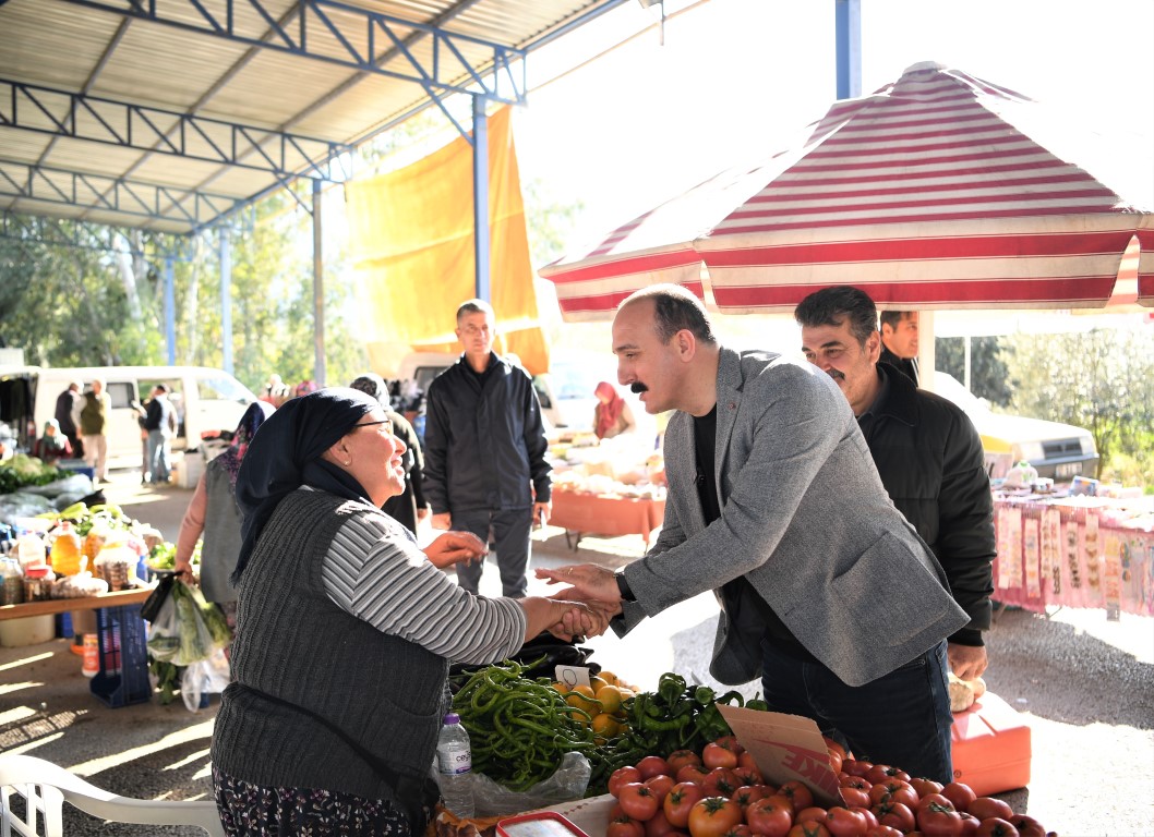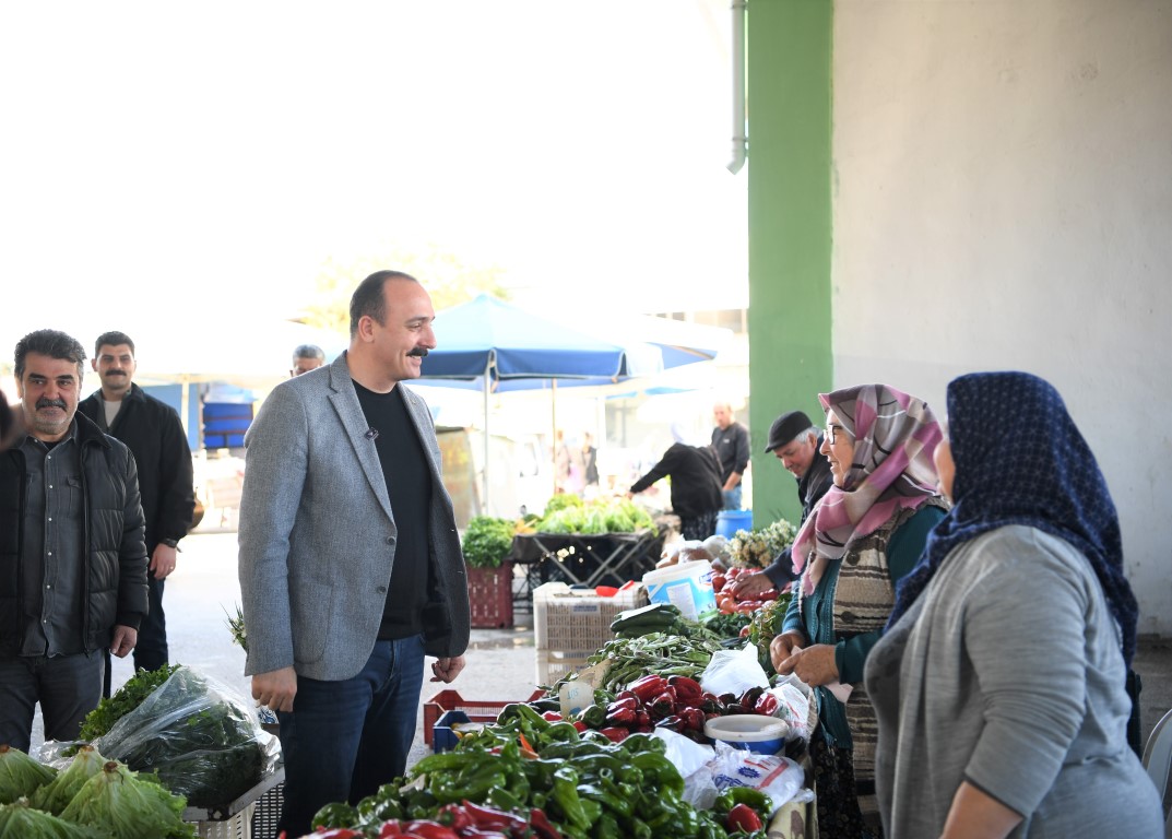 Göreve geldiği günden bu yana gerek kırsal, gerekse de ilçe merkezinde faaliyet gösteren esnafla sık sık bir araya gelen Konyaaltı Belediye Başkanı Cem Kotan, geçtiğimiz hafta sonunda da Çakırlar Mahallesi’nde bir dizi ziyaret gerçekleştirdi. Başkan Kotan, mahalle ziyaretine Çakırlar Cuma pazarından başladı. Kapalı Pazar yerinde yer alan tezgâhları dolaşarak pazar esnafıyla sohbet eden ve sorun ve taleplerini dinleyen Başkan Kotan, esnafın, pazar yerinin fiziki şartlarında yapılmasını istediği iyileştirmeleri tek tek not aldı. Çakırlar Mahalle Muhtarı Fatih Erkan’ın da yer aldığı esnaf gezisinde Kotan, pazar esnafından alışveriş de yaptı.