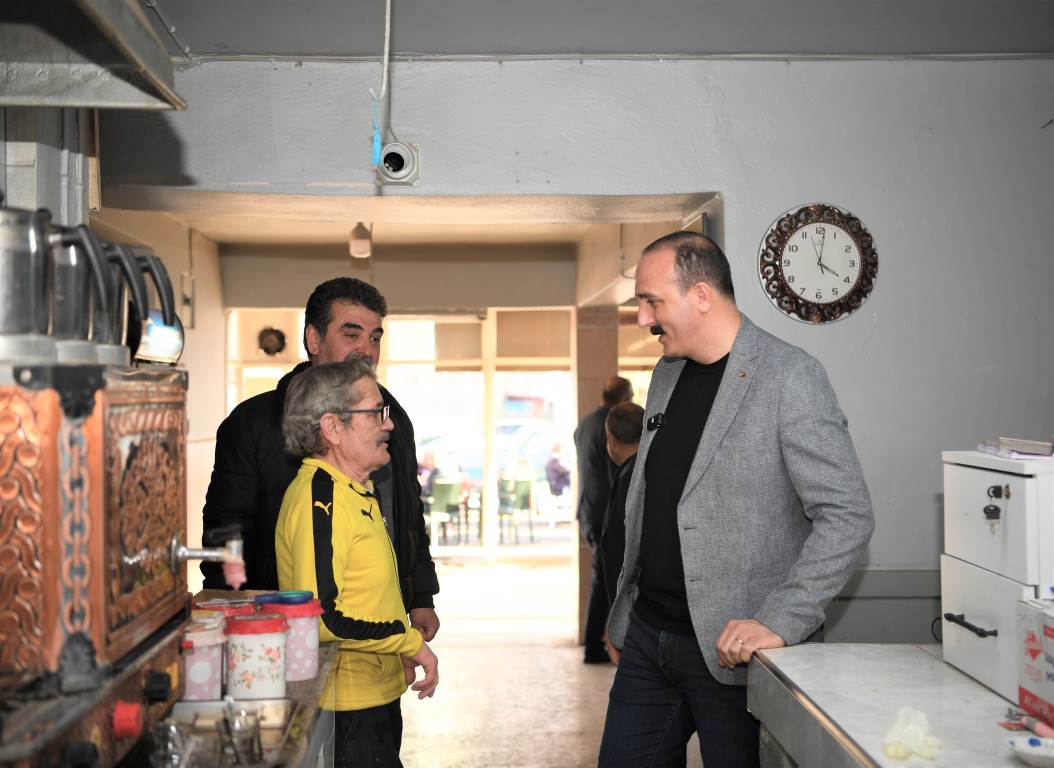 Başkan Kotan, pazar yeri ziyaretinin ardından, mahalle merkezinde yer alan kıraathaneye uğrayarak burada bulunan vatandaşlarla çay içip sohbet etti. Kıraathanede bulunan masaları tek tek dolaşarak hem esnaf hem de vatandaşın sorunlarını ve taleplerini dinleyen Başkan Kotan, bu bölgede şu ana kadar gerçekleştirdiği ve önümüzdeki süreçte yapacağı çalışmaları anlattı. Mahalle sakinlerinin beklentilerini önemsediklerini aktaran Başkan Kotan, vatandaşın aktardığı talep ve önerileri tek tek not aldığını ve bu önerileri dikkate alarak çalışmalar yapacaklarını söyledi.