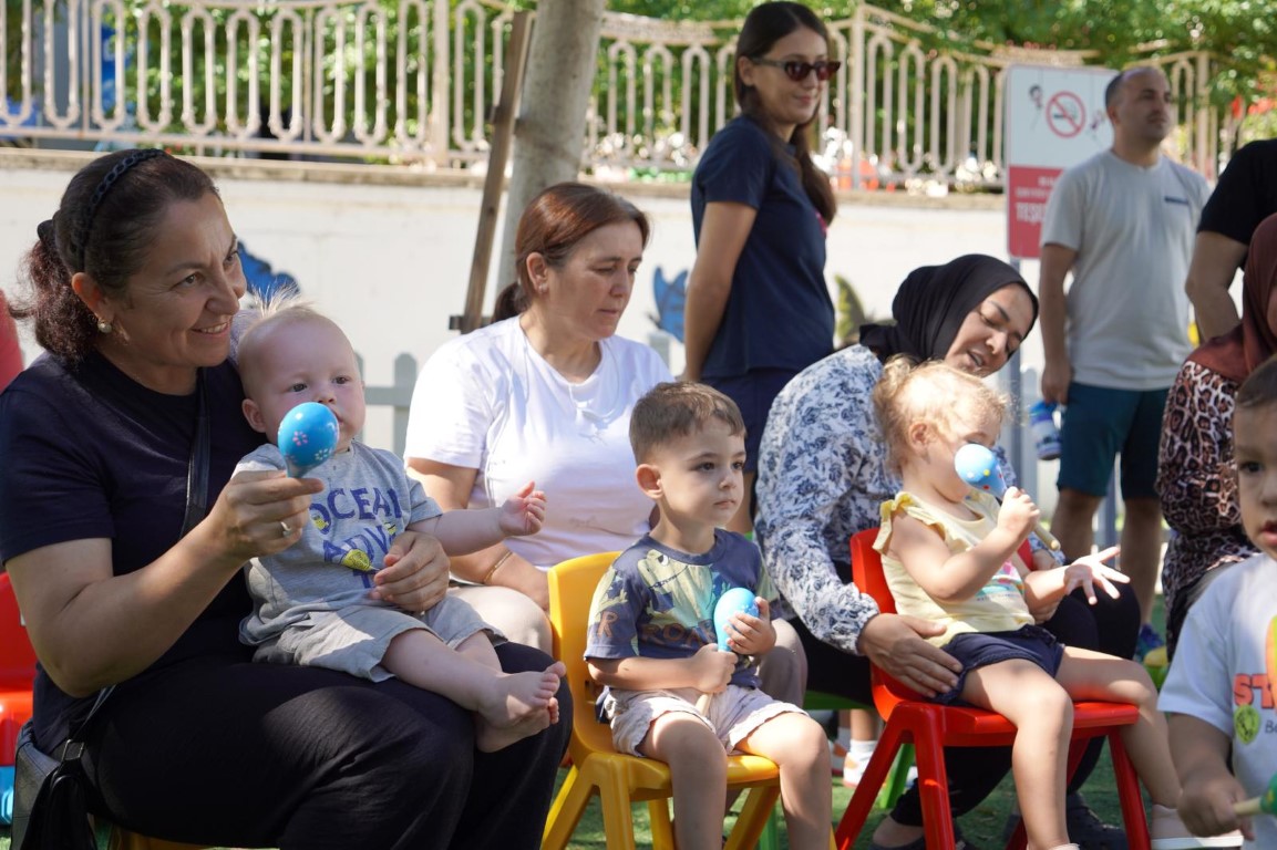 Çal söyle etkinliğiyle çocuklar şarkılarla belli bir ritme ulaştıktan sonra marakaslarla müziğe eşlik etti. Ebeveynlerin desteğiyle oynanan “hayvan seslendirme oyunu” miniklere keyifli anlar yaşatırken, marakaslar ve Orff mendilleriyle yapılan ritim dansları coşkuya renk kattı. Böylece Bebek Parkı adeta bir müzik şölenine dönüştü.