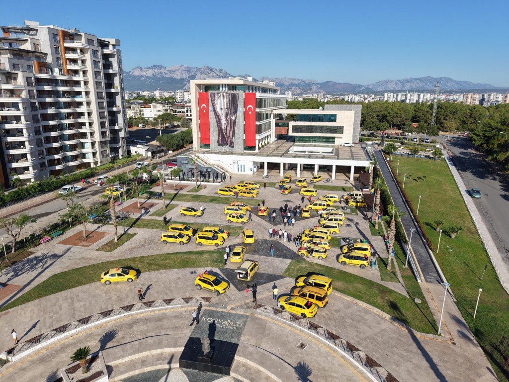 Cumhuriyetin 102’nci yılı Konyaaltı’nda coşku ve gururla kutlandı. Konyaaltı’nda hizmet veren taksici esnafı, araçlarını Türk bayraklarıyla donatarak Cumhuriyet konvoyu oluşturdu. Konvoy, marşlar eşliğinde ilerleyerek Konyaaltı Belediyesi önüne geldi. Konyaaltı Belediye binası önünde taksici esnafını Konyaaltı Belediye Başkanı Cem Kotan karşıladı. Bayraklarla süslenmiş taksileri belediye önünde karşılayan Başkan Kotan, taksici esnafının Cumhuriyet Bayramı coşkusuna ortak oldu. Kutlamanın sonunda Başkan Kotan, taksicilerle birlikte hatıra fotoğrafı çekildi.