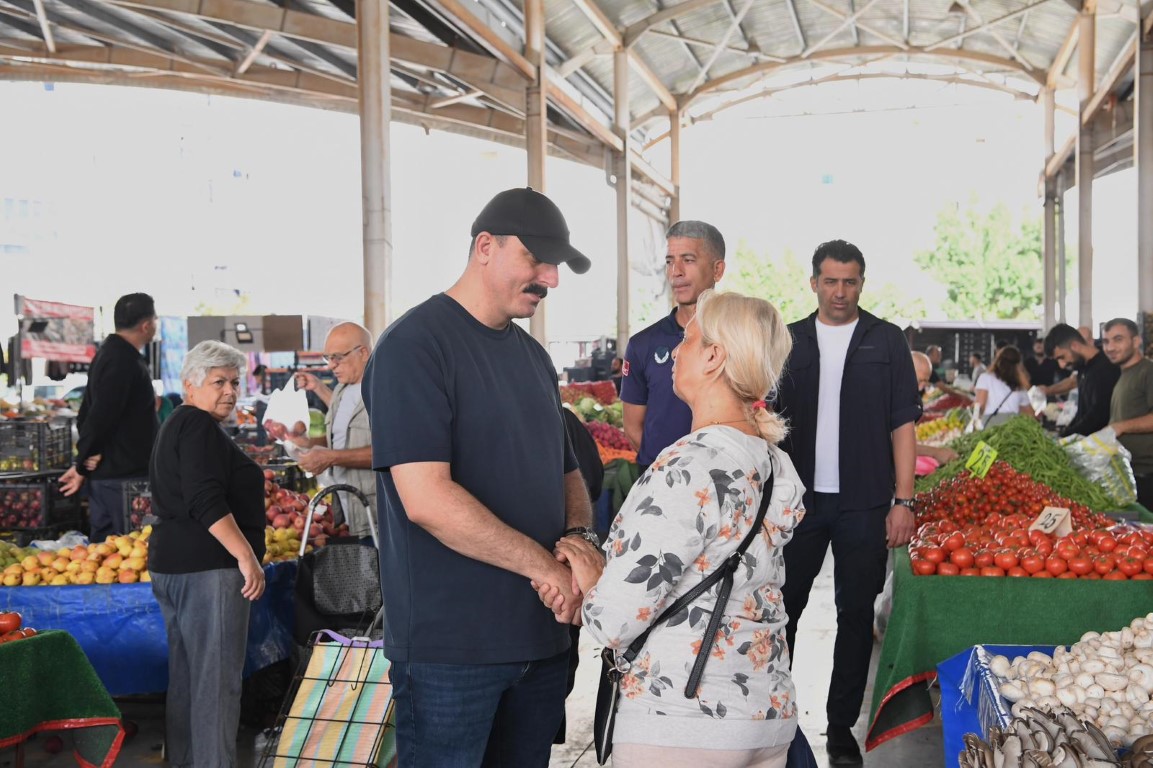 Pazar yeri ziyaretinin ardından konuşan Konyaaltı Belediye Başkanı Cem Kotan, “Ülkemizde yaşanan ekonomik sıkıntılardan şüphesiz ki esnafımız da etkileniyor. Bizler bunun farkındayız. Mümkün oldukça kendileriyle buluşup taleplerini dinliyor, çözüm arıyoruz. Esnafımızla daima bir aradayız. Konyaaltı’mızı birlikte yönettiğimizi her ortamda yineliyorum. Bu anlayıştan asla vazgeçmeyeceğiz. Tüm kıymetli pazar esnafımıza bol kazançlar diliyorum” ifadelerini kullandı.