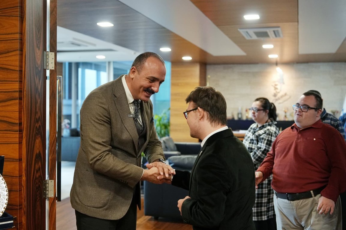 Konyaaltı Belediye Başkanı Cem Kotan, Antalya Down Sendromlular ve Engelliler Derneği Başkanı Gülcan Ay ile özel gereksinimli bireyler ve ailelerini makamında ağırladı. Başkan Kotan, tüm bireyler için eşitlik anlayışıyla hareket ettiklerini ve bu farkındalıklarının bir günle sınırlı olmadığının altını çizdi. Derneğin çalışmalarıyla ilgili Dernek Başkanı Gülcan Ay’dan bilgi alan Kotan, kendilerinin daima yanında olduklarını vurguladı. Buluşmaya katılan tüm katılımcılar, hassasiyetinden dolayı ve ilgisi için Başkan Kotan’a teşekkür etti. Öte yandan ziyaretçiler, dernek içerisindeki üreten eller atölyesinde hazırlanan malzemeleri Kotan’a hediye etti.