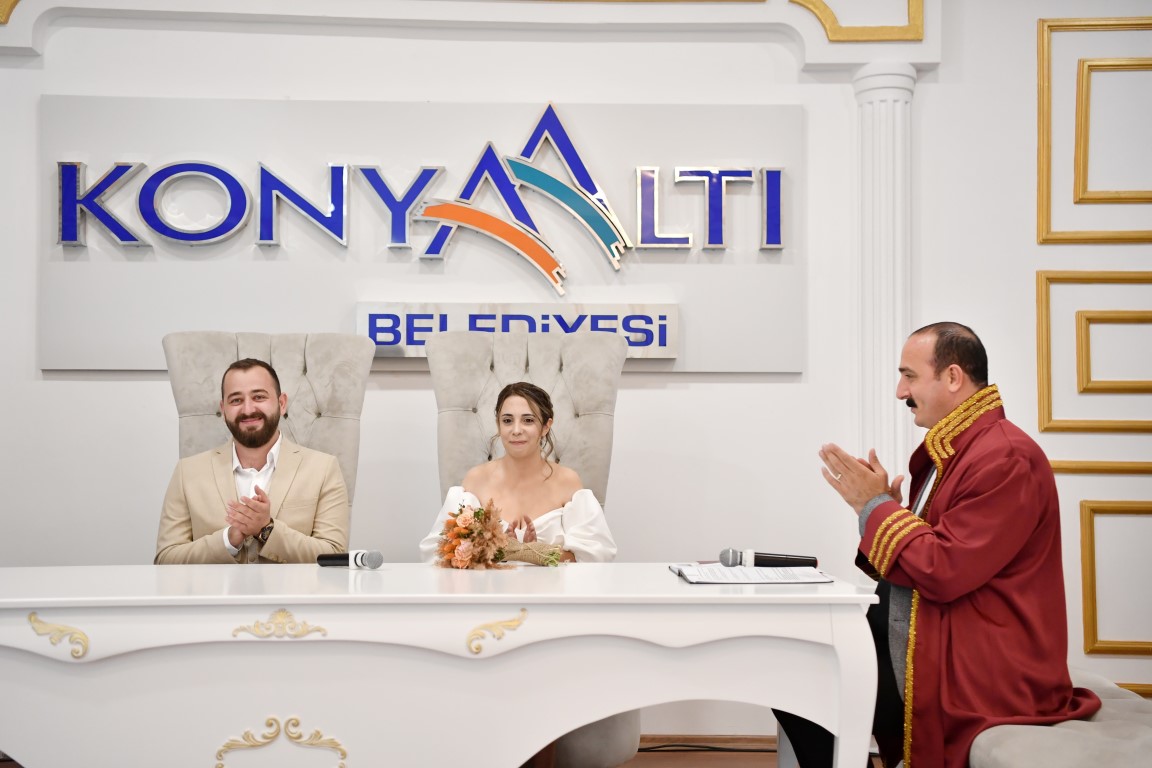 Konyaaltı Belediye Başkanı Cem Kotan belediye başkanı seçilmesinin ardından ilk nikâhını CHP Konyaaltı Gençlik Kolları İlçe Başkanı İsmail Koçak ve Aslıhan Karadağ çiftine kıydı. Başkan Kotan, gençlere bir ömür boyu mutluluklar diledi. HayatPark’ta gerçekleşen nikâh törenine Konyaaltı Belediye Başkan Yardımcısı Müge Gezginci Ünsal, CHP Konyaaltı İlçe Başkanı Demet Gündüz, ilçe yönetimi ile CHP Gençlik Kolları yönetimi katıldı.BİR ÖMÜR MUTLU OLUNNikâh töreninde konuşan Konyaaltı Belediye Başkanı Cem Kotan, “İlk nikâhımı CHP Konyaaltı Gençlik Kolları Başkanımız İsmail Koçak’a kıymak benim için bir onurdur. Bir ömür boyu mutlu olacağınıza inanıyorum.