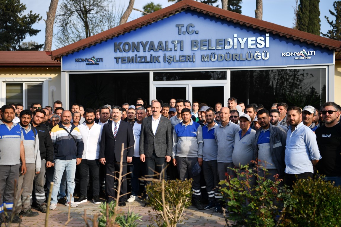 Konyaaltı Belediye Başkanı Cem Kotan, Ramazan Bayramı öncesinde son mesaide belediye personeliyle bayramlaştı. Sabah saatlerinde belediyenin dış birimleri olan Park ve Bahçeler Müdürlüğü ile Fen İşleri Müdürlüğü’ne giderek personelle bayramlaşan Başkan Cem Kotan, daha sonra belediye binasına gelerek buradaki personelle tek tek bayramlaştı. Bayramlaşma programına Konyaaltı Belediyesi meclis üyeleri de katıldı.SİZLERİ ANLAYAN BİR BAŞKAN OLACAĞIMBayramlaşmada personel İle sohbet eden Başkan Cem Kotan, güzel bir 5 yıl geçireceklerini dile getirdi. Kotan, “Şimdiden Ramazan Bayramınız kutlu olsun.