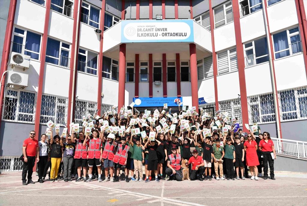 Konyaaltı Belediyesi bünyesinde çalışmalarını sürdüren Sivil Savunma Birimi, Dr. Cahit Ünver İlkokulu-Ortaokulu’nda öğrencilere afet eğitimi ve tatbikatı gerçekleştirdi. Arama kurtarma köpeği Zeyna’nın da katıldığı faaliyette öğrencilere afet bilinci ve afet anında yapılması gerekenler anlatıldı. Tatbikatın sonunda Konyaaltı Belediyesi Sivil Savunma biriminin hazırladığı afet bilinci konulu ‘Tehlike Avcısıyız’ adlı kitap öğrencilere armağan edildi.