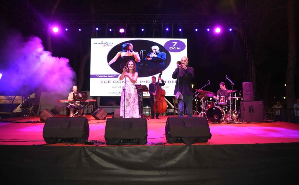 Konyaaltı Belediyesi’nin HayatPark’ta ikincisini düzenlediği Konyaaltı Caz Günleri’nde bu hafta caz müziğinin sevilen isimlerinden Ece Göksu ve İmer Demirer ile orkestrası sahne aldı. Müzikseverler Ece Göksu ve İmer Demirer ile keyifli dakikalar geçirdi. Konyaaltı Belediyesi’nin bu yıl 2’ncisini düzenlediği Caz Günleri konserleri kaldığı yerden devam ediyor. Bu haftaki konserde Ece Göksu ve İmer Demirer ile orkestrası sahne aldı. Gürültüden uzak doğal bir kaçış noktası olan HayatPark’ta gerçekleştirilen etkinlikte performansı ile alanı dolduran müzikseverleri kendine hayran bırakan Göksu ve İmer şarkılar söyleyerek alanda bulunanlara güzel bir gece yaşattı.