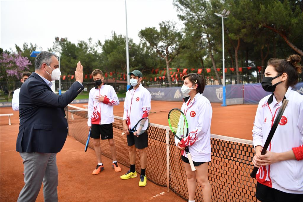 Konyaaltı Belediye Başkanı Semih Esen, İşitme Engelliler Tenis Milli Takımı’nı ziyaret ederek sporcularla bir araya geldi. Sporculara başarılar dileyen Başkan Semih Esen, “Sizleri burada ağırlamaktan büyük mutluluk duyduk.