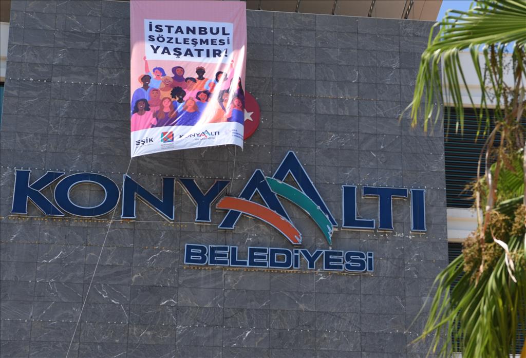 Konyaaltı Belediyesi, tartışmaların odağında yer alan İstanbul Sözleşmesi’ne yönelik tavrını belediye binasına asılan afişlerle açıkladı. Belediye binasının Konyaaltı Sahili tarafına ve ön tarafa, İstanbul Sözleşmesi’ne destekleyen iki dev afiş asıldı. Kadın imgelerinin kullanıldığı afişlerde, ‘İstanbul Sözleşmesi Yaşatır’ yazısı ile sözleşmenin kadınlar açısından değerine dikkat çekildi. Konyaaltı Belediye Başkanı Semih Esen, Kadınlara Yönelik Şiddet ve Aile İçi Şiddetin Önlenmesi ve Bunlarla Mücadeleye İlişkin Avrupa Konseyi Sözleşmesi ya da bilinen adıyla İstanbul Sözleşmesi, kadına yönelik şiddet ve aile içi şiddeti önleme ve bununla mücadelede temel standartları ve devletlerin bu konudaki yükümlülüklerini belirleyen uluslararası insan hakları sözleşmesi olduğunu hatırlattı. Sözleşmenin iptalinin kadınların kazanılmış haklarının geri götürmeye yönelik bir girişim olduğunu belirten Esen, kadına yönelik şiddetin arttığı bugünlerde sözleşmenin iptalinin gündeme gelmesinin manidar olduğunu söyledi.