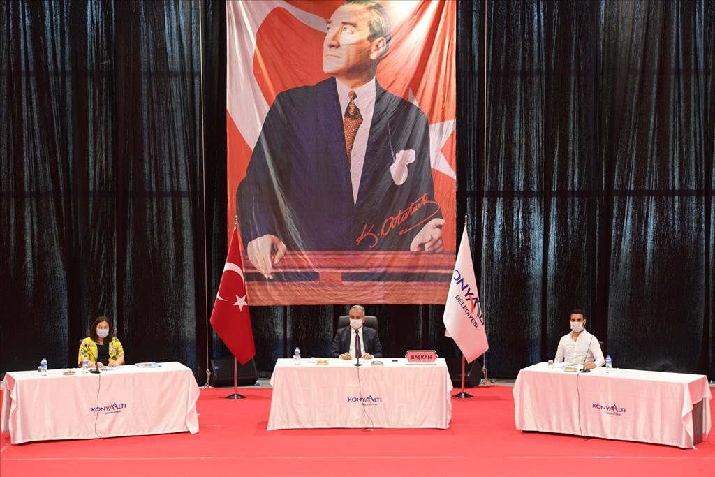 Konyaaltı Belediyesi Temmuz ayı olağan meclis toplantısı, Konyaaltı Belediye Başkanı Semih Esen’in başkanlığında gerçekleştirildi. 11 gündem maddesinin görüşüldüğü toplantıda esnafa da müjde çıktı. Geçtiğimiz günlerde esnaf temsilcileriyle bir araya gelen Başkan Semih Esen, pandeminin yoğun şekilde geçtiği dönemde işyerlerini kapalı tutan belediye kiracılarının kira ücretlerini almayabileceklerinin de işaretini vermişti. Konuyu Konyaaltı Belediyesi Temmuz ayı olağan meclis toplantısında gündeme alan Başkan Esen, toplantıya ara vererek komisyon üyelerinin ilgili gündem maddesini görüşmesini istedi.