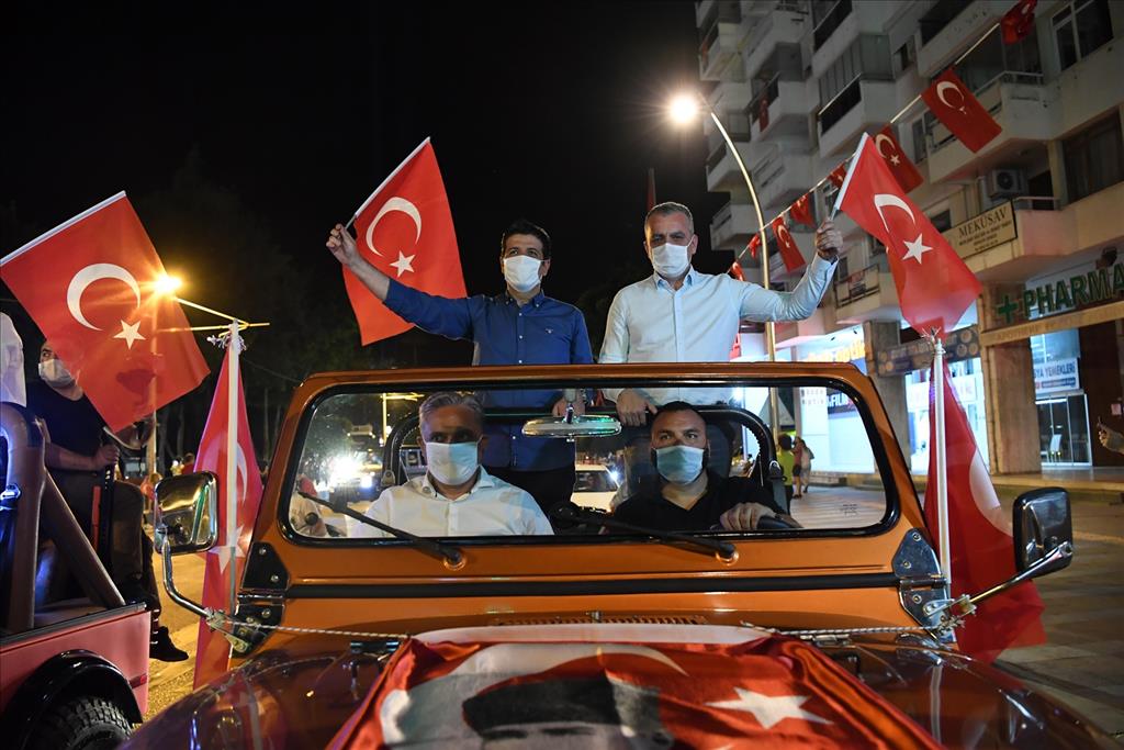 Vatandaşlar ellerinde Türk bayraklarıyla balkonlara çıkarak, bayram coşkusunu yaşadı. Sokaklarında otobüste konser gerçekleştiğini gören vatandaşlar şarkı ve türkülere eşlik etti.