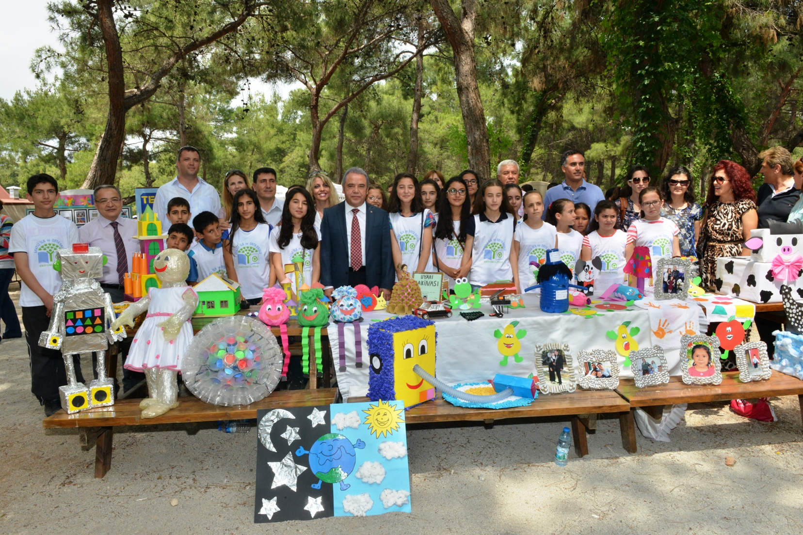 Türkiye Çevre Eğitim Vakfı Koordinatörlüğünde yürütülen Eko-Okul Programı kapsamında Antalya Eko Okul Şenliği düzenlendi. Konyaaltı Belediyesi’nin katkılarıyla Nasriha Park’ta düzenlenen şenliğe 20 okuldan 400 öğrenci katıldı. Öğrenci ve öğretmenlerle sohbet eden Konyaaltı Belediye Başkanı Muhittin Böcek, yapılan çalışmalar hakkında bilgi aldı. Çevre bilincinin geliştirilmesi ve çevre sorunlarına dikkat çekmek amacıyla Konyaaltı Belediyesi olarak okullarda eğitim çalışmaları yaptıklarını belirten Başkan Böcek, “Bu sene 19 okulda 3 bin öğrenciye çevreeğitimleri verdik. Atık ve çevre ilişkisi, atıkların çevreye verdikleri zararlar ve geri dönüşümün doğal kaynakları nasıl koruduğunu anlattık.