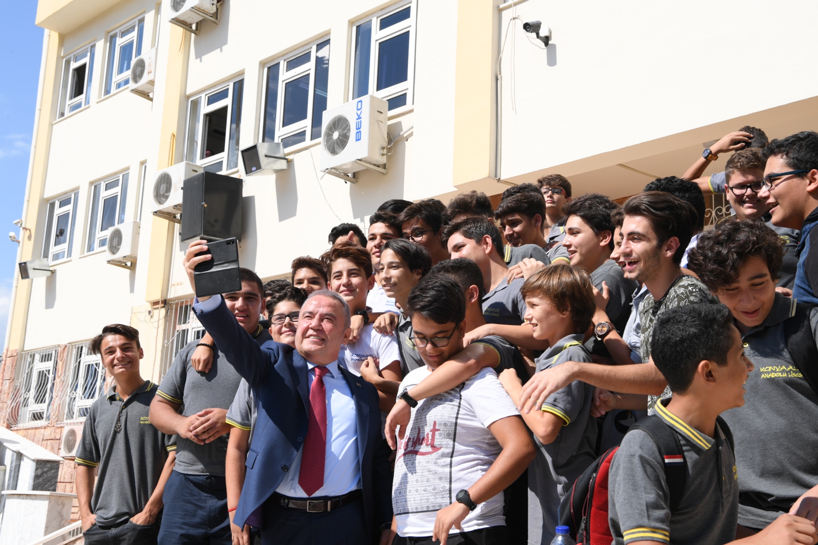 Konyaaltı Belediye Başkanı Muhittin Böcek, yeni eğitim-öğretim yılının ilk haftalarında okul ziyaretlerine devam ediyor. Son olarak Konyaaltı Anadolu Lisesi’ni ziyaret eden Muhittin Böcek, Okul Müdürü Nedim Yıldız’a ve öğretmenlere yeni eğitim öğretim yılının hayırlı olmasını diledi. Konyaaltı Anadolu Lisesi’nin kendinde ayrı bir yeri olduğunu belirten Başkan Muhittin Böcek, “Belediye Başkanı olarak göreve başladığım ilk yıllarda Konyaaltı’nda devletin lisesi yoktu. Bu okulun yerinde ilkokul vardı. İlkokulun yıkılarak yerine yeni bir okulun yapılmasını istedik.