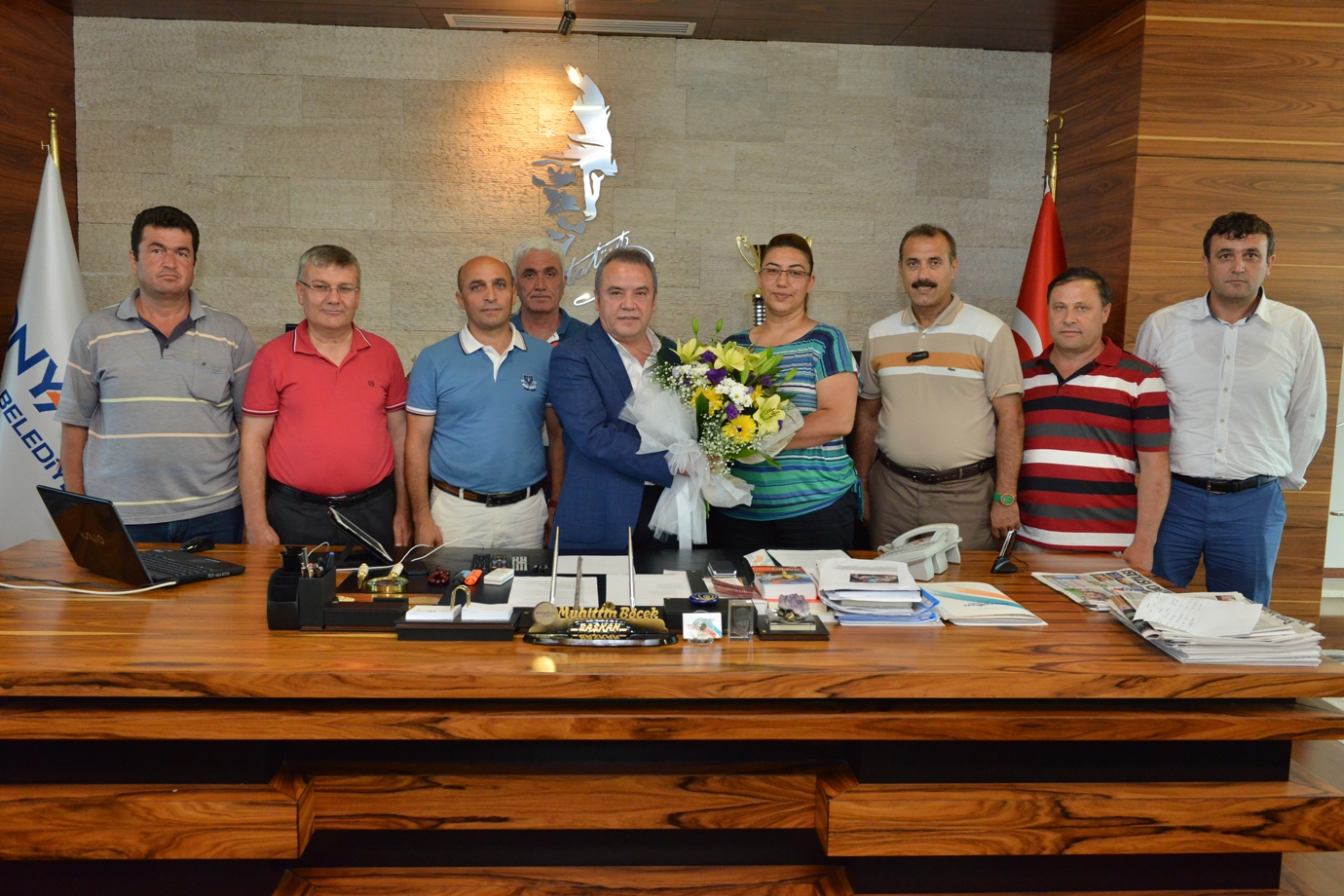 22 Haziran Pazar günü yapılan Belediye-İş Sendikası Antalya Şubesi 10. Olağan Genel Kurulu Toplantısı’nda başkanlık görevine seçilen Kemal Çavuşoğlu, yeni yönetimiyle birlikte Konyaaltı Belediye Başkanı Muhittin Böcek’i makamında ziyaret etti. Türkiye Belediyeler ve Genel Hizmetler İşçileri Sendikası (Belediye-İş) Şube Başkanı Kemal Çavuşoğlu, Konyaaltı Belediyesi’nde çalışanların her zaman barış ve huzur içinde olduklarını belirterek, Başkan Böcek’in işçilerin alın terini yere düşürmeden, emeklerinin karşılığını ödediğini söyledi. Kemal Çavuşoğlu Başkan Böcek’e çiçek takdim ederek teşekkür etti. Başkan Böcek, aile ortamı içerisinde çalıştıkları işçilerin motivasyonunu yüksek tutmak için gereken çalışmaları yaptıklarını kaydederek, şöyle devam etti: “Bunun neticesinde personelimle birlikte en iyi hizmeti halkımız için üretelim istiyoruz.