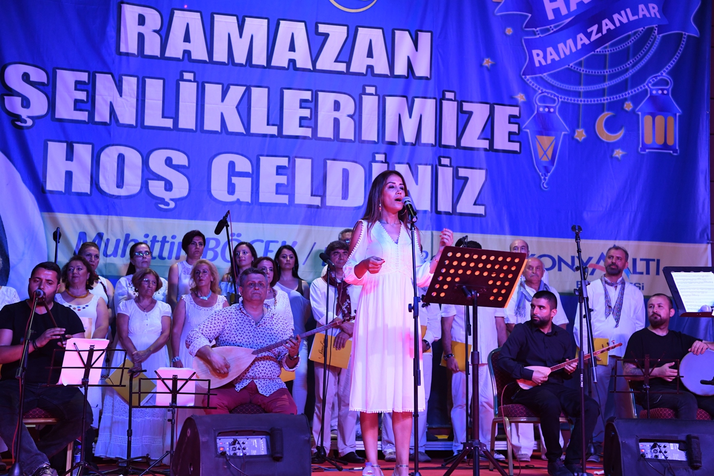 Konyaaltı Belediyesi Ramazan Şenlikleri tüm hızıyla devam ediyor. Konyaaltı Belediyesi ev sahipliğinde 23 Nisan Parkı’nda sahne alan Sümer Ezgü Sanat Akademisi Türk Halk Müziği (THM) Korosu muhteşem bir konsere imza attı.Konseri akademinin kurucusu sevilen ses sanatçısı Sümer Ezgü’de izledi. Sümer Ezgü Sanat Akademisi THM Korusu, Anadolu’nun farklı yörelerinden seslendirdiği türkülerle Antalyalılara unutulmaz bir Ramazan akşamı yaşattı.İzleyenler THM Korosunun türküleriyle keyifli dakikalar geçirdi.