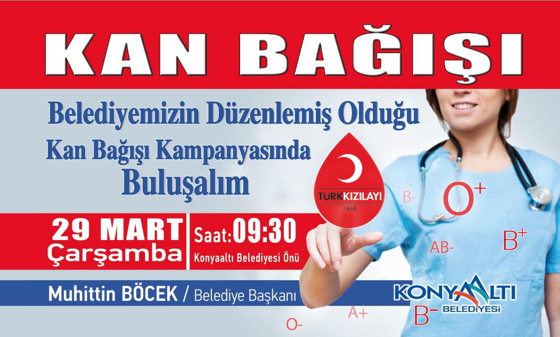 Konyaaltı Belediyesi, Türk Kızılayı Antalya Kan Bağışı Merkezi işbirliğiyle düzenlenen Kan Bağışı Kampanyası'nın 13.sü için hazırlıklarını tamamladı. Kan Bağışı Kampanyası öncesi yazılı açıklama yapan Konyaaltı Belediye Başkanı Muhittin Böcek, kan bağışın önemine değindi.Muhittin Böcek şöyle konuştu; "Her yıl binlerce insan, bir kaza ya da hastalık sonucunda kan bulamadığı için hayatını kaybediyor. Buna karşılık yapılan araştırmalar, yaklaşık 80 milyon insanın yaşadığı ülkemizde yıllık kan bağış oranının, nüfusun yüzde 1'i kadar olduğunu gösteriyor.