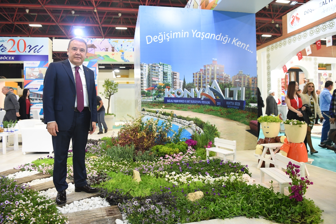 Hestourex Dünya Sağlık, Spor, Alternatif Turizm Fuarı ve Kongresi’nde Konyaaltı Belediyesi standı yoğun ilgi görüyor. Konyaaltı Belediye Başkanı Muhittin Böcek, standı ziyaret eden misafirlerle tek tek ilgilendi. Konyaaltı Belediye standını, Döşemealtı Belediye Başkanı Turgay Genç, İbradı Belediye Başkanı Serkan Küçükkuru, Kemer Belediye Başkanı Mustafa Gül ve çok sayıda ziyaretçi gezdi. Stant içerisinde çiçek bahçesini andıran yeşil dokulu alan yerli ve yabancı ziyaretçilerin ilgi odağı oldu. Ziyaretçiler bol bol fotoğraf çektirdi.