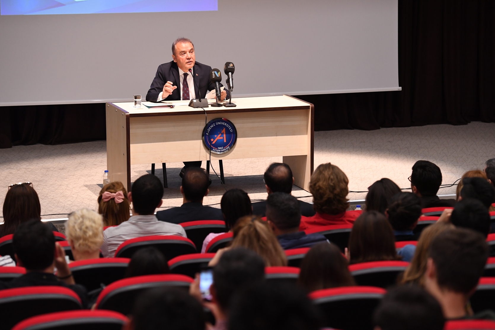 “Tarih hayal edenleri değil, gerçekleştirenleri yazar” diyen Konyaaltı Belediye Başkanı Muhittin Böcek üniversiteli öğrencilere, “Hayallerinizin peşinden gidin.” dedi. Akdeniz Üniversitesi İletişim Fakültesi Dekanı Prof. Dr. Ahmet Ayhan’ın ev sahipliğinde düzenlenen “Antalya Siyasetinde Çeyrek Asır” konulu konferansa konuşmacı olarak katılan Başkan Muhittin Böcek, siyasette edindiği tecrübelerini öğrencilerle paylaştı.