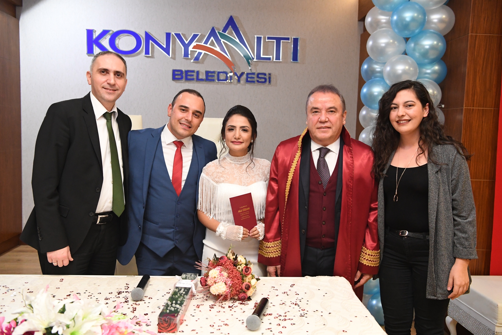 Konyaaltı Belediyesi, 14 Şubat Sevgililer Günü evlenmek için müracaatta bulunan çiftlere sürpriz hazırladı. Konyaaltı Belediye Başkanı Muhittin Böcek’in talimatıyla nikah akdinin gerçekleştirildiği Konyaaltı Belediyesi Feslikan Salonu balonlarla süslendi. Balonlardan oluşan kalplerin altında bol bol fotoğraf çekinen genç çiftler özel günlerini ölümsüzleştirmeyi de unutmadı.Akdeniz Üniversitesi Hemşirelik Bölümü Öğretim Üyesi Ayşe Deliktaş ve Maliye Bakanlığı Müfettişi Cihan Demir çifti de bu özel günü nikah tarihi olarak seçenler arasındaydı. Çiftlerin nikah akitlerini gerçekleştiren Konyaaltı Belediye Başkanı Böcek şunları söyledi;" Bu özel günde büyük küçük, genç yaşlı demeden herkesin yaşantılarını sevgi üzerine inşaat etmek ve barış ortamının kalıcı olmasını sağlamak en büyük hedefimizdir.
