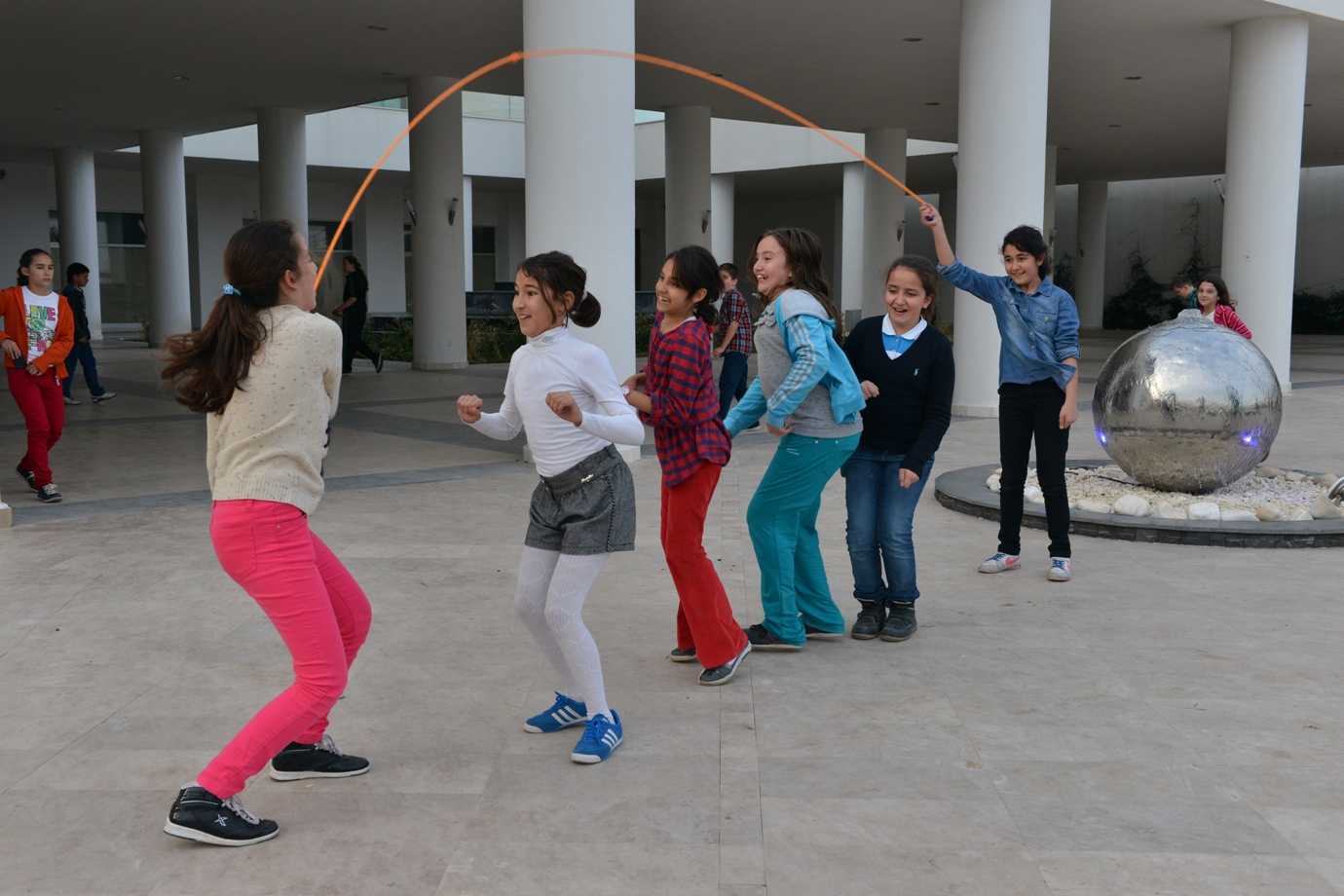 Belediye avlusunda ip atlamak, top koşturmak…