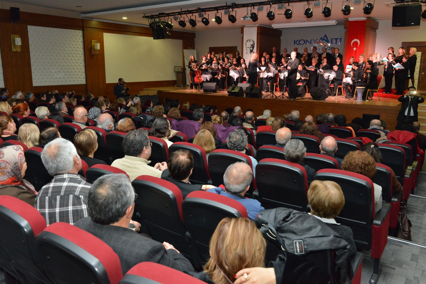 Sosyal ve kültürel etkinlikleriyle Antalya’da bir çok kuruma öncülük eden Konyaaltı Belediyesi, 2014’te de bir birinden farklı etkinliklere yer veriyor. Konyaaltı Belediyesi Türk Sanat Müziği Korosu, 40’ı bayan 60 üyesiyle Antalyalı sanatseverlerin karşısına çıktı. Konyaaltı Belediyesi Feslikan Salonu’nda gerçekleştirilen konsere müzik severler büyük ilgi gösterdi. “Yeni Yıla Merhaba” konseriyle yılın ilk konseri için sahne alan Türk Sanat Müziği Korosu, bir birinden güzel şarkıları Antalyalılar için seslendirdi. Farklı meslek gruplarından oluşan Konyaaltı Belediyesi Türk Sanat Müziği Korosu, müziğin ritmini tamamen amatör bir ruh ile müzik severlere aktardı.