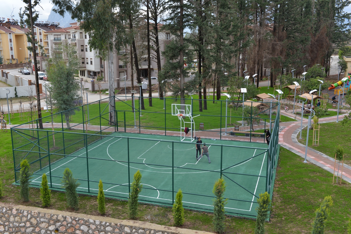 Uluç Mahallesi parkına kavuştuUluç Mahallesi 1170 ile 1171 sokak kesişiminde 3 bin 220 metrekarelik alana kurulu olan parkın içerisinde 259 metrekare büyüklüğünde yarım basketbol sahası, engellilere uyumlu çocuk oyun gurubu, kauçuk döşemeli çocuk oyun grubu, görme engelli karolu zemin, çatılı piknik masaları ve oturma bankları bulunuyorYeşil dokuya sahip çıkıyoruz Hızla artan nüfus nedeniyle günümüzde yeşil dokunun gerektiği kadar korumadığına dikkat çeken Başkan Böcek, Konyaaltı’nda durumun tersi yönde olduğunu söyledi. Yaptıkları çalışmalarla ilçede yeşil doku miktarının her geçen gün artığına dikkat çeken Başkan Böcek, son olarak Uluç Mahallesi’nde yapımı tamamlanan parkı, halkın kullanımına sunduklarını söyledi. Başkan Böcek önümüzdeki günlerde diğer bir çok mahallede yapımını tamamladıkları parkların ilçe halkının hizmetine sunulacağı müjdesini verdi..