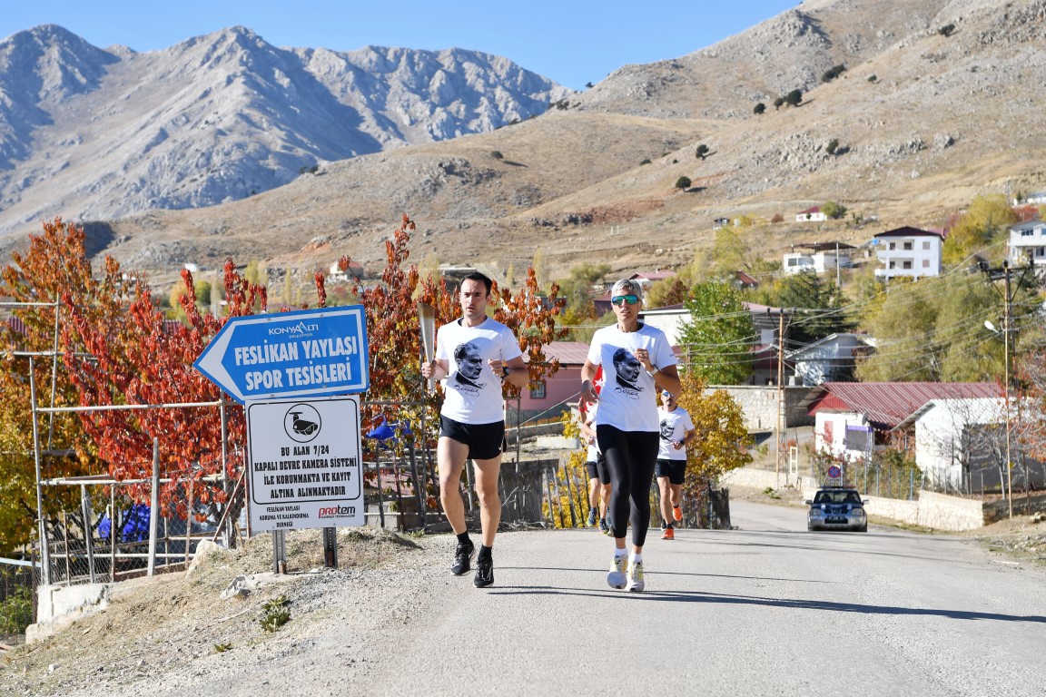Konyaaltı Belediyesi, HayatPark’ta düzenlediği etkinliklerin yanı sıra, Feslikan Yaylası’ndan başlayarak belediye hizmet binası önünde tamamlanan Cumhuriyet Koşusu ile çok anlamlı bir organizasyona imza attı. Adım Adım Antalya grubu işbirliği ile düzenlenen etkinlikte 14 sporcu 41 kilometrelik parkurda Cumhuriyet için koştu. Feslikan Yaylası Güreş Sahası’nda aldıkları meşale ve Türk Bayrağını 14 mahalleyi geçerek Konyaaltı Belediyesi önüne getiren sporcular, Konyaaltı Belediye Başkanı Cem Kotan’a teslim etti. Bayrağı teslim alıp, 3 kez öperek alnına götüren Başkan Kotan, belediye önündeki Atatürk büstünün yanına kurulan sembolik meşaleyi yaktı.YAŞASIN CUMHURİYETMeşale seromonisinin ardından tüm sporculara teşekkür eden Konyaaltı Belediye Başkanı Cem Kotan, gelecek kuşaklara yönelik manevi dönüşleri olan bir etkinlik gerçekleştirdiklerini ifade etti.