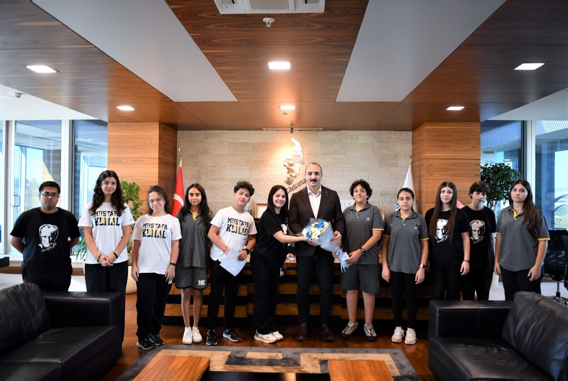 Konyaaltı Belediye Başkanı Cem Kotan, makamında ağırladığı Mustafa Kemal Okulları öğrencilerinin sorularını yanıtladı. Yerel yönetim olarak gençlerin gelişimine katkı sağlamanın öncelikli hedeflerinden biri olduğunu belirten Başkan Kotan, öğrencilerle sık sık bir araya gelmekten duyduğu memnuniyeti ifade etti. Öğrencilerin, ‘Biyomikrofon projeleri’ kapsamında sorduğu soruları yanıtlayan Kotan, çevre, sürdürülebilirlik ve biyoteknoloji üzerine değerlendirmelerde bulundu. Başkan Kotan, Konyaaltı Belediyesi olarak doğa dostu projelere her zaman destek vereceklerini aktardı.KOORDİNELİ ŞEKİLDE ÇALIŞIYORUZSoru-cevap öncesinde kendini tanıtan Başkan Kotan, öğrencilerin ilk söyleşisinde yer almaktan büyük mutluluk duyduğunu ifade etti.