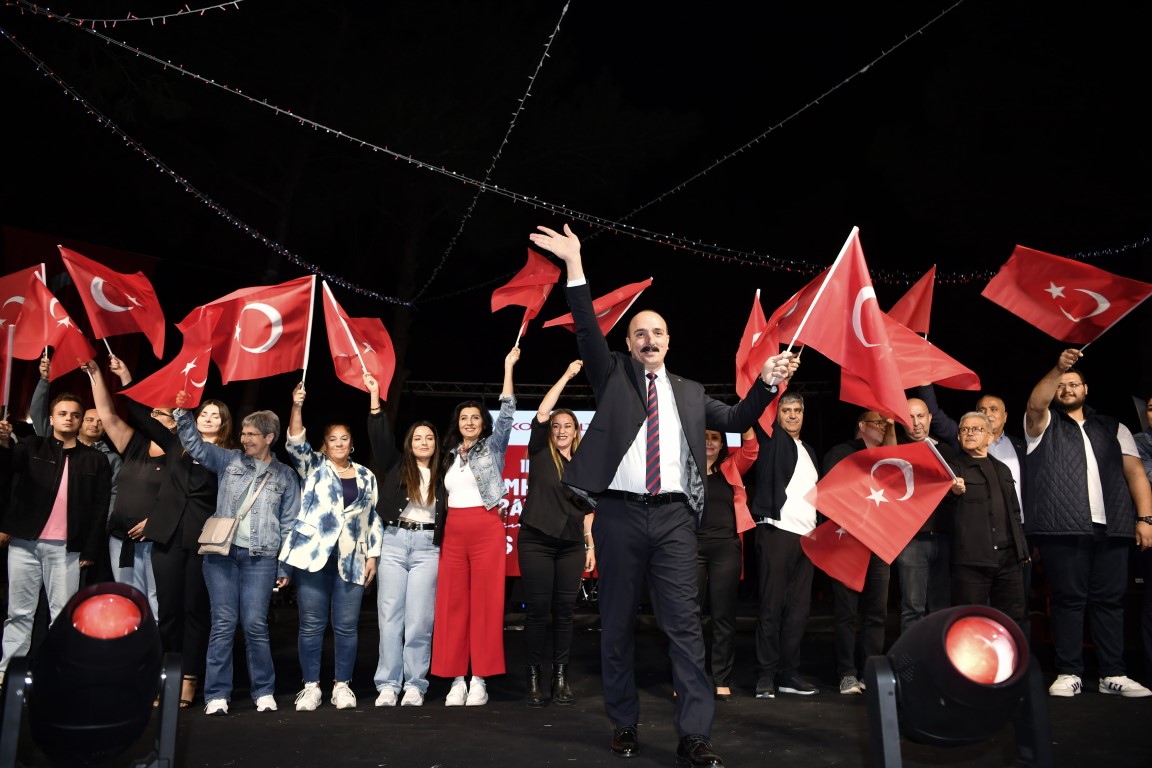 Konyaaltı Belediyesi, Cumhuriyet’in 101’inci yılını coşkuyla kutladı. HayatPark’ta düzenlenen Cumhuriyet Bayramı kutlamaları renkli görüntülere sahne oldu. Saat 17.00’de başlayan kutlamaya Konyaaltı Belediye Başkanı Cem Kotan ve eşi Demet Ayne Kotan’ın yanı sıra, Cumhuriyet Halk Partisi Konyaaltı İlçe Başkanı Demet Gündüz ve yönetimi, Cumhuriyet Halk Partisi Antalya İl Gençlik Kolları Başkanı Onur Kayar ve yönetimi, Cumhuriyet Halk Partisi Konyaaltı Kadın Kolları Başkanı Aslı Tazegül ve yönetimi, meclis üyeleri, muhtarlar, STK temsilcileri ve yüzlerce vatandaş katıldı.BİZ BİRLİKTE ÇOK GÜZELİZEtkinlikte konuşan Konyaaltı Belediye Başkanı Cem Kotan, “Öncelikle konuşmama başlamadan önce geçtiğimiz gün gerçekleşen terör saldırısını kınıyorum.