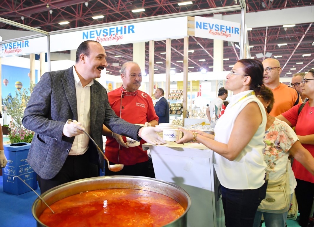Antalya Ticaret Borsası (ATB) ev sahipliğinde bu yıl 13’ncüsü düzenlenen YÖREX Fuarı 9-13 ekim tarihleri arasında ANFAŞ Fuar Merkezi’nde ziyaretçilerine kapılarını açtı. Konyaaltı Belediyesi de fuar merkezine kurduğu standında bölgeye has yöresel lezzetleri sergiledi. Stantta Çandır fasulyesi, doyran patlıcanı, Çakırlar’da yetişen mandalina, limon ve nar yer aldı. Başkan Kotan, standa gelen Antalya Valisi Hulisi Şahin, Antalya Büyükşehir Belediye Başkanı Muhittin Böcek ve Konyaaltı Kaymakamı Rahmi Köse’ye fasulye ikramında bulundu.YÖRESEL ÜRÜNLERE ÖNEM VERİYORUZKentin zengin kültürel ve gastronomik mirasını tanıtmak amacıyla fuara katılarak, yöresel ürünlerini sergileyen Konyaaltı Belediyesi, özellikle çandır fasulyesi ile katılımcıların dikkatini çekti.